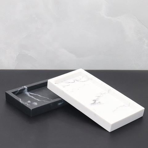 Bandeja de tocador de baño de mármol artificial, bandeja de jabón de cocina de resina rectangular bandeja organizadora de encimera de baño