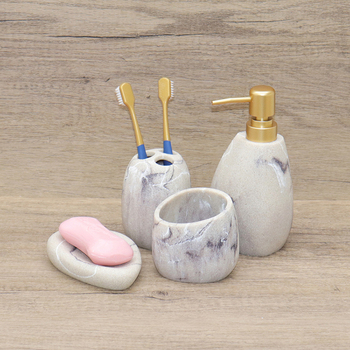 Vendita calda di quattro pezzi Set famiglia in pietra creativa accessori per il bagno Bundle include bottiglia di lavaggio a mano tazza di acqua in resina legno